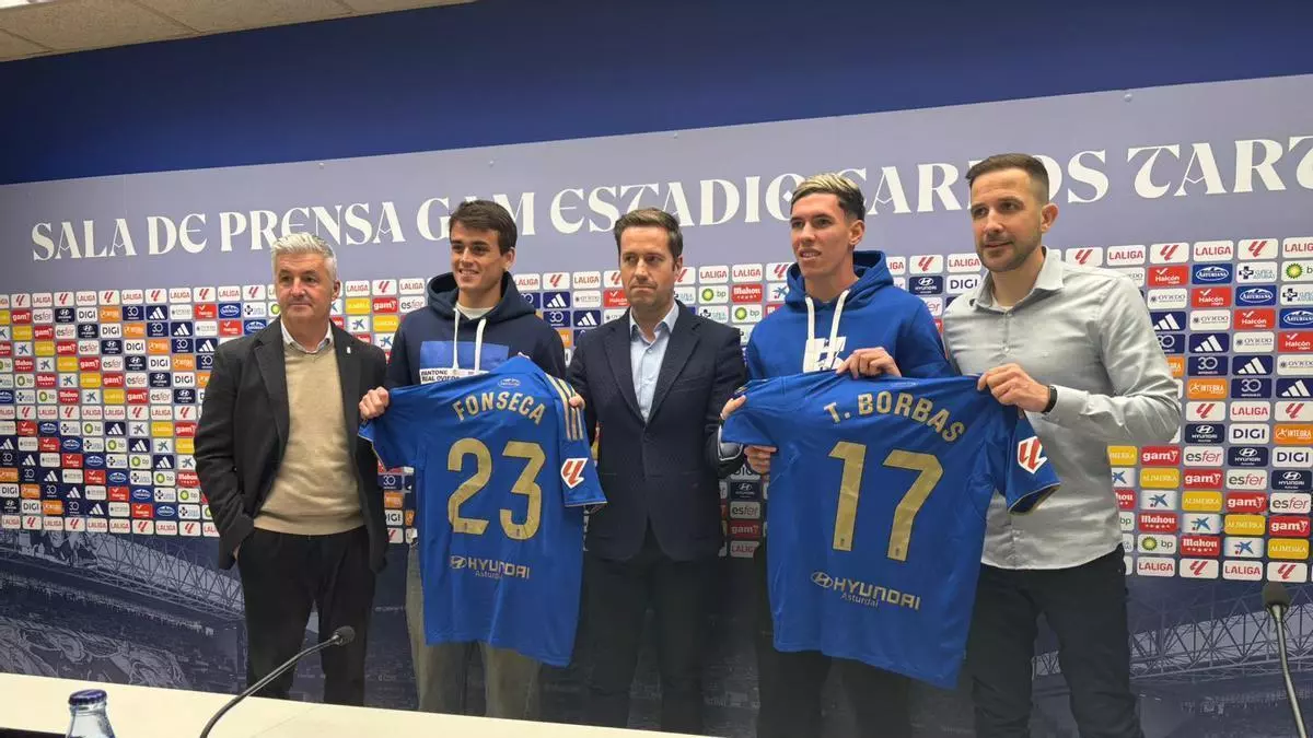 Pese a que ya debutaron en la Primera División española con el Real Oviedo, el club azul presentó ayer a los uruguayos Nicolás Fonseca y Thiago Borbas como nuevos jugadores carbayones.